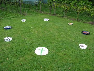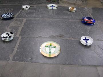 Deze installatie bestaat uit vier grote en vier kleinere schalen.