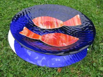 Afmeting van de kleine schalen: doorsnee 28 cm, diepte 7 cm.